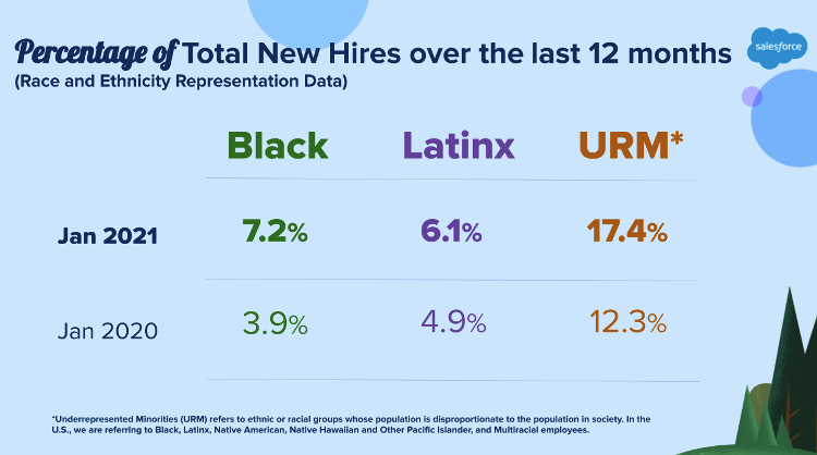Inclusive hiring at Salesforce is simply hiring. In our last quarterly update, we announced several new recruiting programs including launching our new diversity recruiting team and piloting our underrepresented minority referral program.