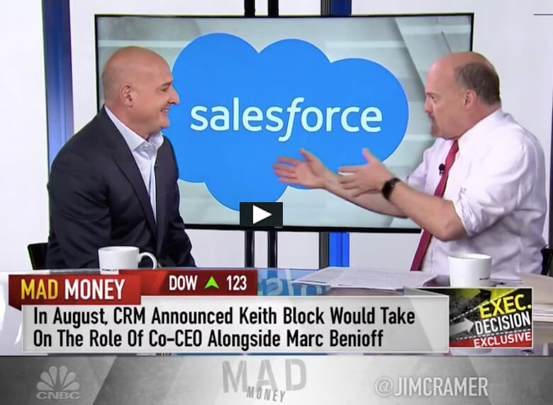 Cramer asked how companies in disparate industries, ranging from banking to retail, can benefit from working with Salesforce. “At the end of the day everything begins and ends with the customer,” Block said. “It’s all about the 360-degree view of the customer and that has been the holy grail since I’ve been in the industry—providing the insights, the engagement, the technology around how customers can have a greater experience.”