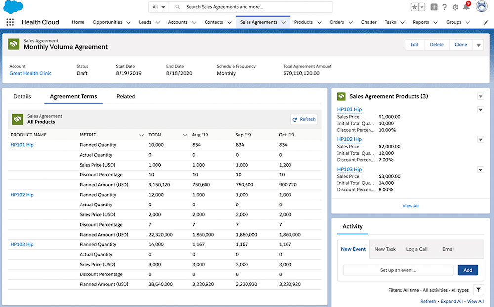Salesforce’s new Sales Agreements feature, now available in Health Cloud.