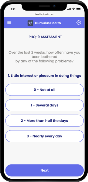 • Intelligent Assessments aids care teams and counselors capturing behavioral health assessments over the phone, helping to identify risk level and personalize care for individuals experiencing mental health issues. Care teams and counselors can also send patient assessments like PHQ-9 before an appointment or counseling session and once they are completed, generate recommendations to act on.