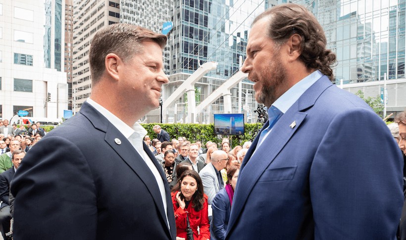San Francisco Mayor Mark Farrell, seen here with Marc Benioff, praised Salesforce Tower as a symbol of prosperity.