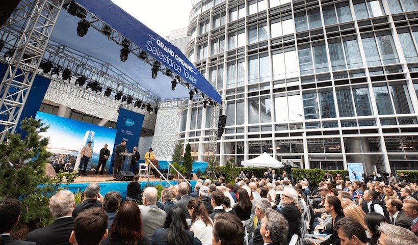 At the grand opening of Salesforce’s new San Francisco’s headquarters, Chairman and CEO Marc Benioff said the 1,070-foot Salesforce Tower will serve as a symbol of hope and inspiration for the local community, but chronic civic problems including inequality, homelessness and unsanitary conditions must be addressed.