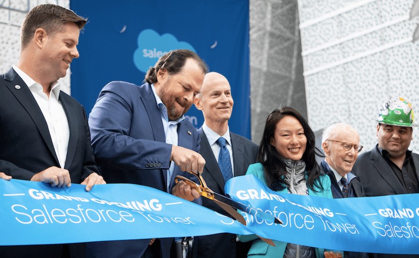 At the grand opening of Salesforce’s new San Francisco’s headquarters, Chairman and CEO Marc Benioff said the 1,070-foot Salesforce Tower will serve as a symbol of hope and inspiration for the local community, but chronic civic problems including inequality, homelessness and unsanitary conditions must be addressed.