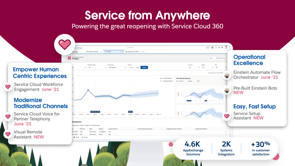 - “In times of change, you need a platform that grows with you. And what we’ve seen over the last year is that service has become one of the biggest opportunities for growth…so today we’re announcing the world premiere of the next generation of Service Cloud. The Service Cloud you know and love, but with relevant features and innovation to help us deliver service from anywhere, right now.” – Neeracha Taychakhoonavudh, EVP, Global Customer Success & Strategy, Salesforce