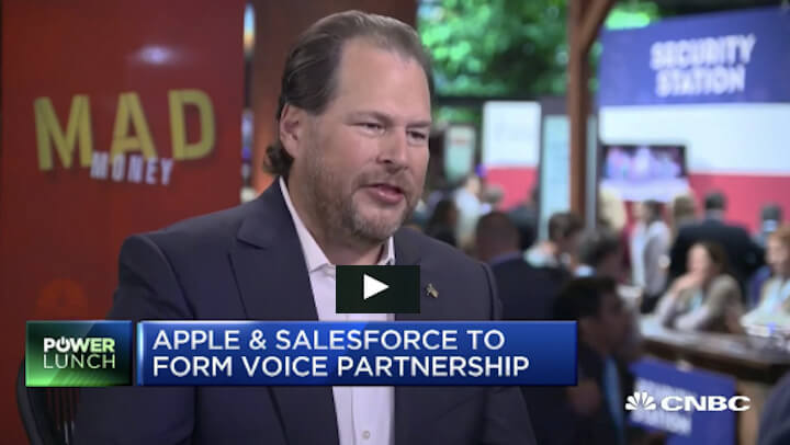 Benioff and Cramer talked about Salesforce’s recently announced partnership with Apple, including enabling innovative voice-centric applications that leverage Apple’s Siri. Benioff emphasized that Salesforce’s partnership with Apple is focused on much more than basic voice recognition, including connecting Salesforce’s artificial intelligence tools to Siri.
