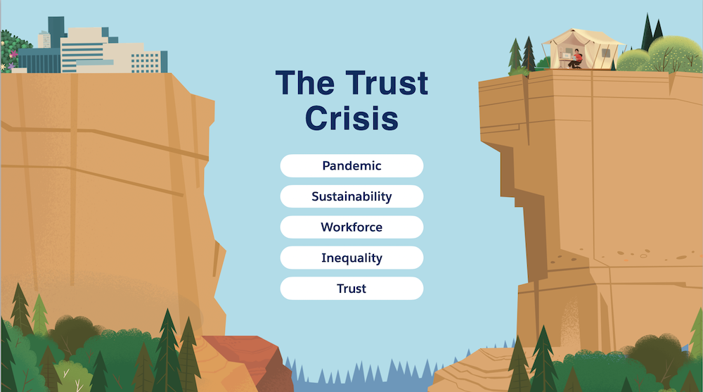 In his keynote Marc outlined multiple challenges that impact everyone on the planet and shared Salesforce’s vision of the Trusted Enterprise. Many organizations have not yet started to reckon with the challenges ahead. We face multiple crises, all happening all at once, that must be addressed for organizations to become Trusted Enterprises.
