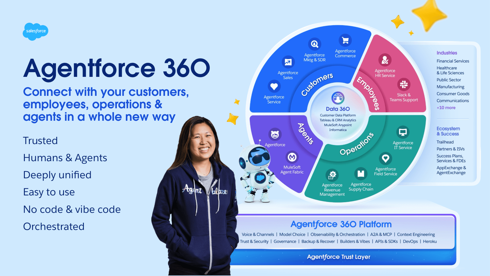Salesforce staat bekend als het toonaangevende AI-gestuurde CRM en blijft voortdurend innoveren om bedrijven op nieuwe en betere manieren met hun klanten te verbinden. Als eerste bedrijf dat zakelijke software naar de cloud bracht, blijven we de grenzen van CRM verleggen. Dat doen we door vertrouwde data te combineren met autonome agents, zodat organisaties diepere en meer gepersonaliseerde klantrelaties kunnen opbouwen en medewerkers effectiever kunnen werken.