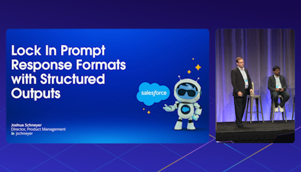 Use Prompt Builder’s structured outputs to define strict JSON response schemas with the Lightning Type builder, ensuring reliable, easy-to-parse agent responses.