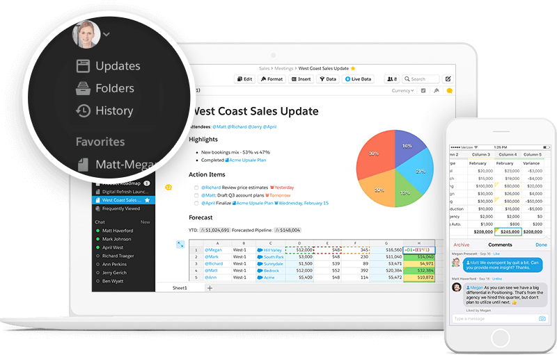 Make better decisions for your customers by exporting Salesforce reports into Quip spreadsheets so you can analyze and discuss without worrying that the data is out of date.
