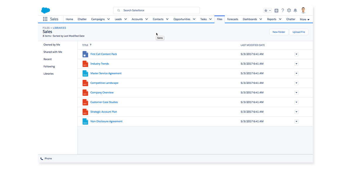 Sales Cloud connects with SharePoint, OneDrive, and Google Drive, to allow you to bring files right into your CRM solution while maintaining all the security and compliance you expect from Salesforce.