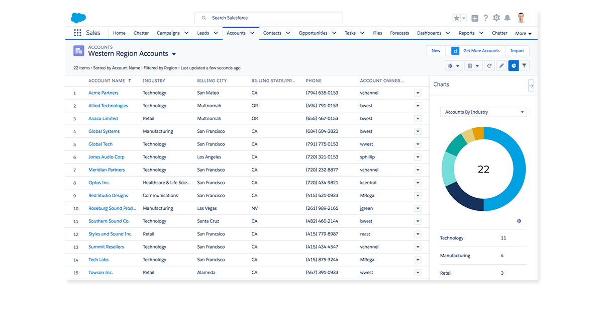 Open any account to instantly view key details, including must-see business news highlighted by Einstein AI.
