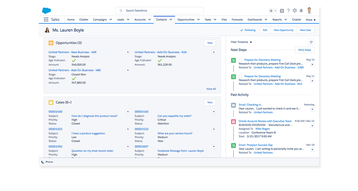 It’s easy to check out your past activity with a customer. It’s all there for you in one consolidated list.