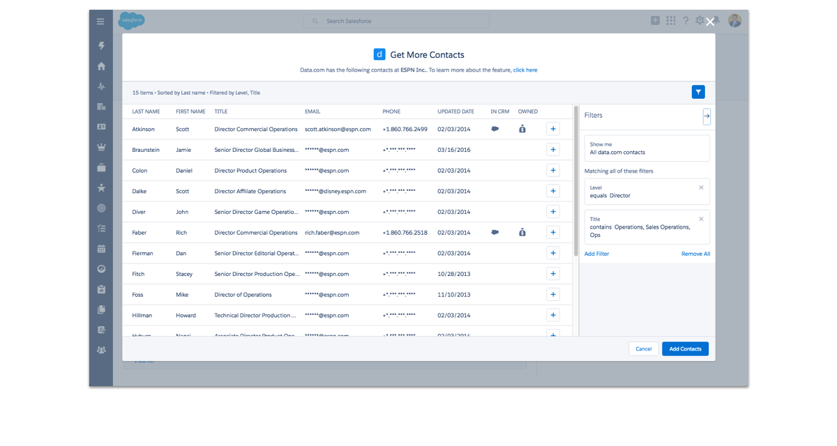 Supercharge prospecting by searching for the right decision makers and easily importing them into your accounts - all without leaving Sales Cloud.