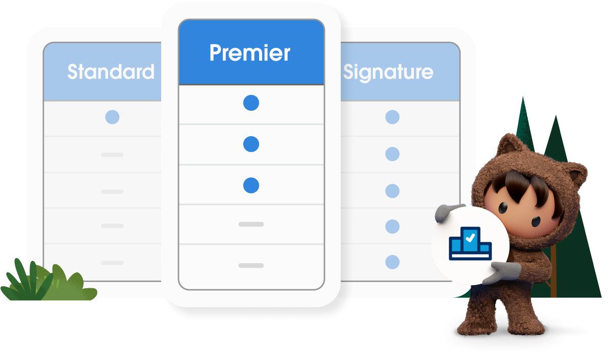 With Premier, Agentforce experts help align your AI goals to product capabilities and create a strategy to achieve them. Through Agentforce workshops, you'll learn about real-world Agentforce use cases, get answers, and discover best practices for Agentforce success. And with Developer and Technical Support you can make sure your Agentforce solution is running smoothly.