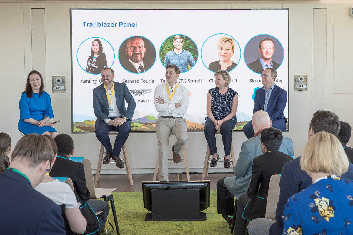 A panel of Trailblazers from three iconic British brands - Gerhard Fourie, Director of Marketing and Brand Strategy at Aston Martin, Terrence Sorrell, Global Business Design Manager at Centrica Hive Ltd and Claire Carroll, Head of Member and Customer Services at The Co-op Group, alongside Simon Mulcahy, our global CMO. With our fabulous host, Ashling Kearns, UK CMO.