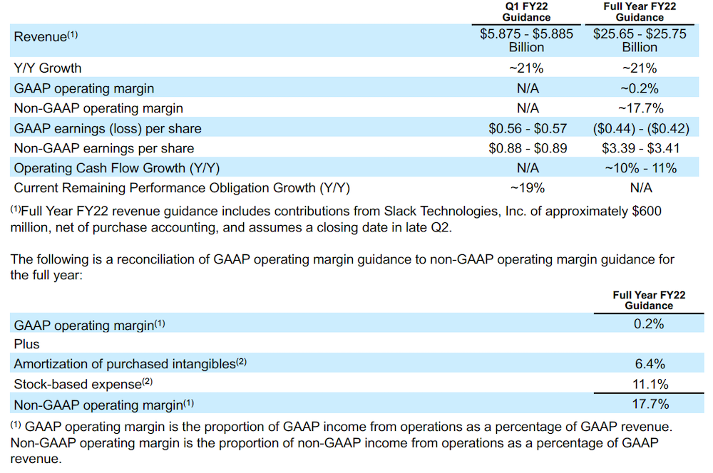 As of February 25, 2021, the company is initiating its GAAP earnings per share guidance, non-GAAP earnings per share guidance, and current remaining performance obligation growth guidance for its first quarter of fiscal year 2022. As of February 25, 2021, the company is raising its revenue guidance previously provided on December 1, 2020 for its first quarter of fiscal year 2022 and full fiscal year 2022. As of February 25, 2021 the company is initiating its operating cash flow guidance, GAAP earnings per share guidance, non-GAAP earnings per share guidance, GAAP operating margin guidance and non-GAAP operating margin guidance for its full fiscal year 2022.