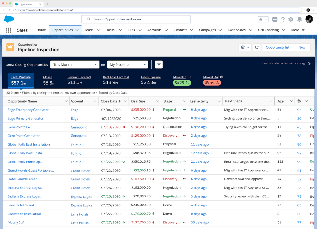 - Pipeline Inspection uses AI to narrow focus on the deals that matter most while tracking pipeline changes week by week, pinpointing which deals may need their support or coaching.