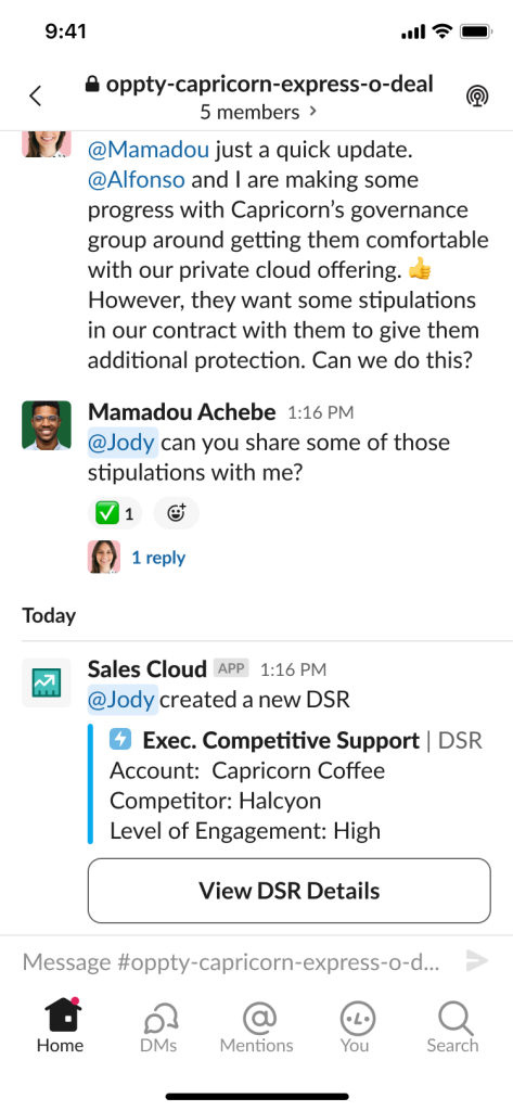• Slack-First Sales - Deal Room on Mobile Device