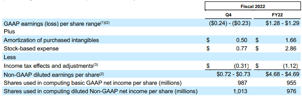 The following is a per share reconciliation of GAAP diluted earnings (loss) per share to non-GAAP diluted earnings per share guidance for the next quarter and the full year: