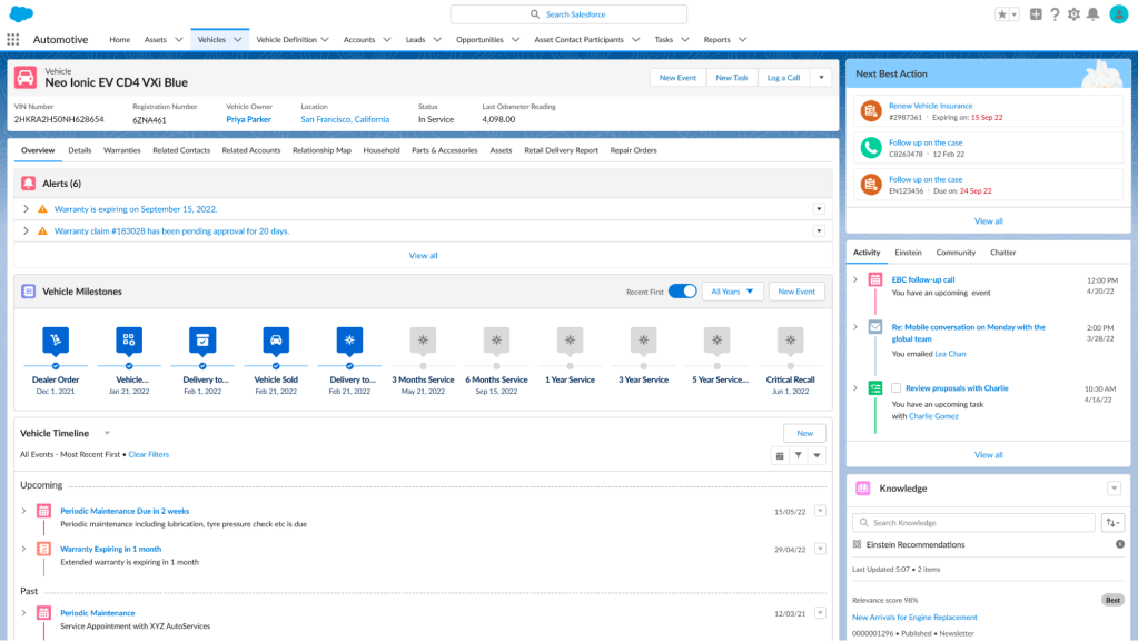 “The future of the automotive industry will be defined by software, whether you are buying, driving, or servicing a vehicle,” said Jajoo. “With Salesforce and the depth of the Salesforce ecosystem, automotive companies can bring together a complete view of the driver and the vehicle to power connected, immersive consumer experiences at every stage of their journey.”