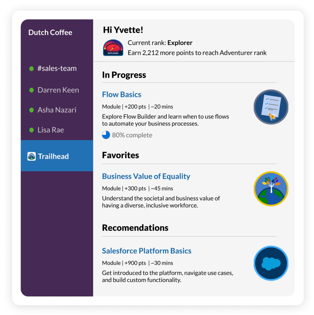 - Slack-First Trailhead powers personalized learning directly in the flow of work in Slack.