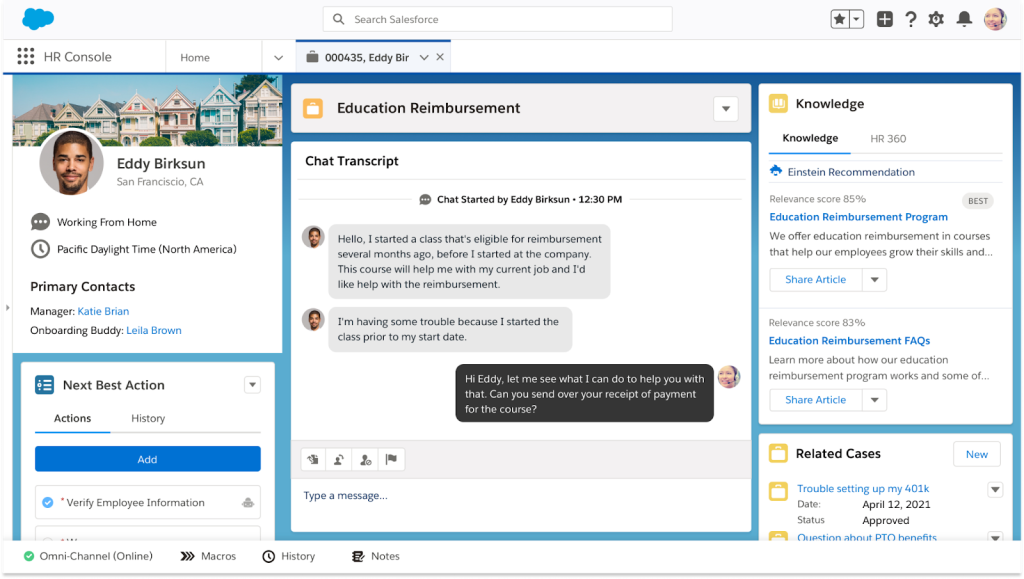 Salesforce customers have been using Service Cloud for years to deliver excellent customer experiences, self-service, automation, and analytics, with several extending their Service Cloud deployments to also cover employee service use cases. Bringing these best practices together helps customers deliver even more value to one of their most important stakeholders: their employees.